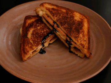 Smoked beef, melted cheddar and mozzarella, grilled between golden sourdough slices and finished with a rich balsamic-honey glaze.